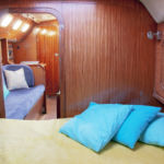 Na jachcie jest miejsce do spania dla 6 osób: dwie zamykane kabiny 2-osobowe oraz dwie pojedyncze koje w mesie. Ponadto jest funkcjonalna kuchnia wyposażona w kuchenkę z piekarnikiem, lodówkę, zlew a także wszystkie naczynia i akcesoria kuchenne. Mamy również stół nawigacyjny dla szanownego kapitana (lub Pani kapitan!), a także łazienkę z toaletą zaburtową. Na łódce znajdziecie też dużo szafek, półek i schowków także każdy z załogi będzie miał gdzie schować swoje rzeczy.
