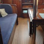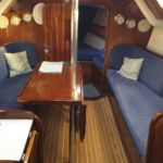 Dzięki temu, że jest dość szeroki, wewnątrz mamy dużo swobody, porządny stół oraz dużo wygodnego miejsca do siedzenia. Również w kokpicie komfortowo może żeglować pełna załoga.