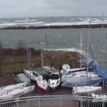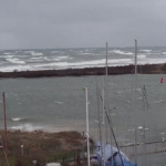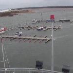 Nowy rok przywitaliśmy hucznie (testując czerwone ratunkowe race spadochronowe), według kalendarza zima można powiedzieć w pełni, choć ostatnimi laty śniegu raczej zbyt wiele nie ma ale w końcu, po kilku tygodniach względnego spokoju dotarł do naszej przystani solidny jesienno-zimowy sztorm – kilkadziesiąt godzin dość silnego wiatru (8-9 stopni Beauforta) z północy wywołało wysokie (podobno 6m) fale i spowodowało konkretną cofkę między innymi na Wiśle Śmiałej, wg. wodowskazu przybyło ponad metr wody. Jak widać na zdjęciach zalany został teren przystani, nie jest przyjemnie. Zdjęcia z kamery TASK oraz z serwisu Windy.
