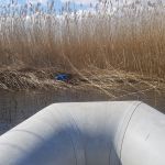 Pamiętacie nasz odbijacz który odpłynął podczas ostatniego sztormu, ja pamiętałem, więc przy pierwszej nadarzającej się okazji wybrałem się na jego poszukiwania… i oto on, cały i zdrowy, po kilku tygodniach leżenia w trzcinach wrócił uratowany do domu. Przy okazji zdobyłem nową umiejętność – pływanie pontonem z jednym pagajem. Wniosek i uwaga tylko taka – z wiatrem jest ok, pod wiatr jest nie ok, bardzo nie ok.